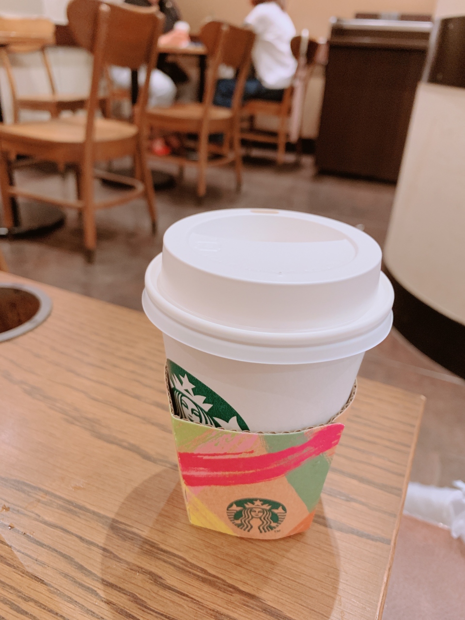 京都駅の近くでうろうろしていてスタバにいきつきまして。疲れて椅子に埋もれました。季節限定メニューをオーダーしたいけどやっぱりラテにしました。今回はスイーツはやめました。人の行き来はみるだけでたのしいですね。