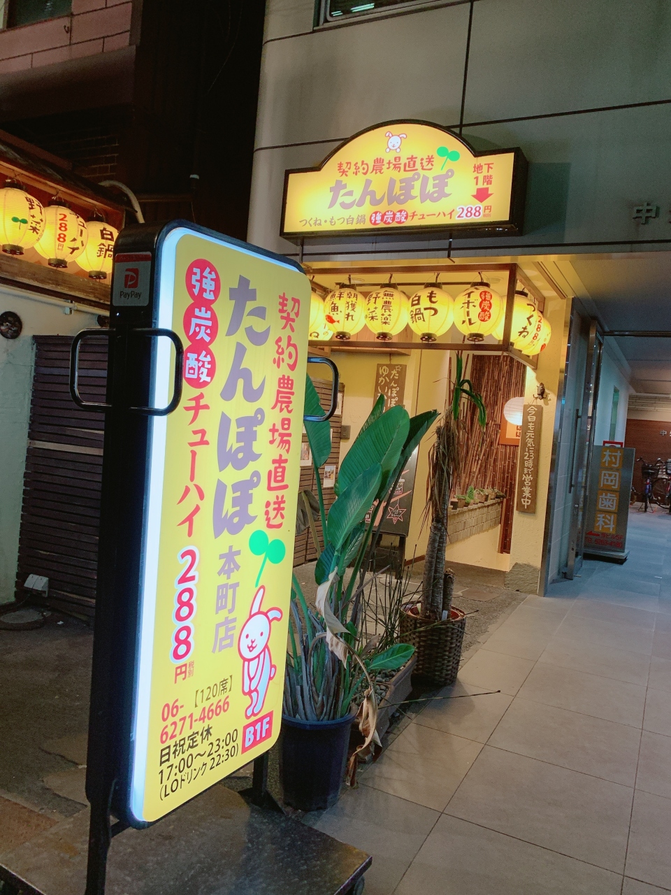 本町に居酒屋さんが並ぶエリアがあります。忘年会シーズンなので人がおおいですね。二次会で利用した居酒屋なのですがここは日本酒と揚げ物がメインではありますが、もちろんそれ以外もあるのでサラダとお茶でしのぎました。