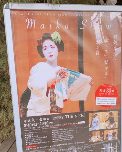 京都で宿泊するもいつもとちょっと違う京都らしいことしたいななんておもってとったのがこちらのホテルです。なんと舞妓さんに会えるんですよね。なかなか舞妓さんに会うことってできないのでこれは楽しいエンタメでございました。