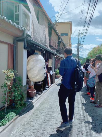 嵐山の代わりに有名なこちらの神社へバスでやってきました。芸能の神様だそうで、有名どころの芸能の方の名前がずらりと並んでいました。境内も広いし、名前見てるだけでだいぶ時間すごせちゃう感じですね。目の前には嵐電も。