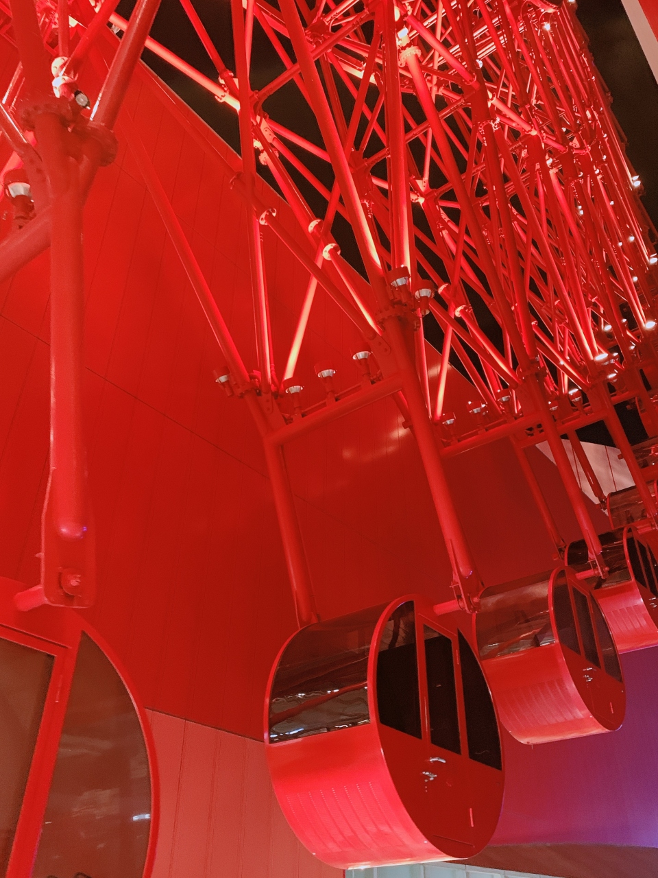 梅田にある真っ赤な観覧車。これは大阪のランドマークのひとつです。久しぶりに乗車していみました。10年ぶり以上かな。大阪の町はとくにきれいなワケでもないので上空から見てもそれほど感動はないですが、空間はほどほどにいい感じ。