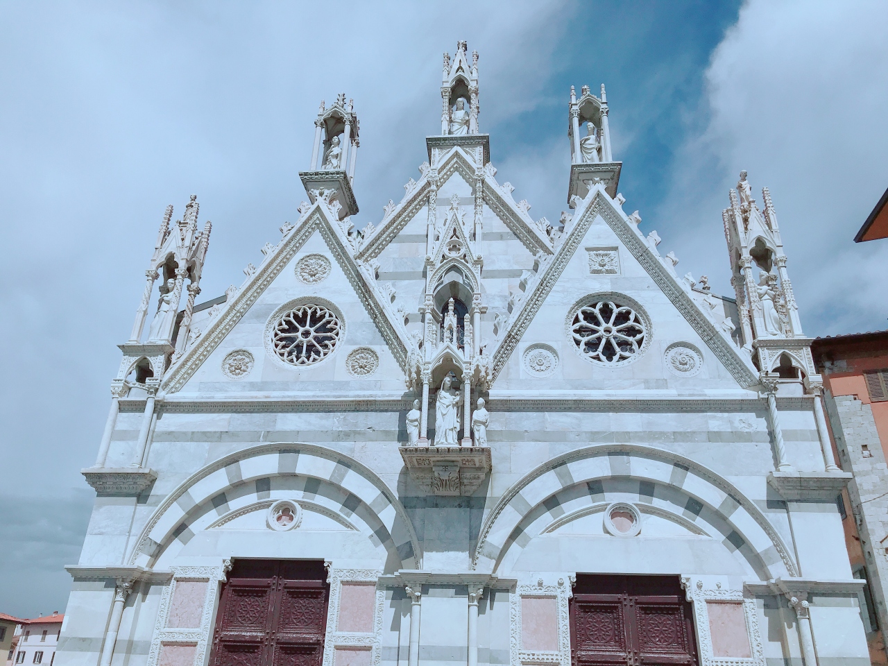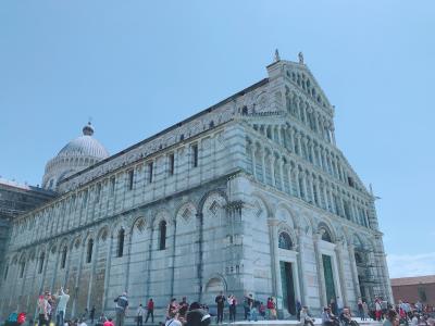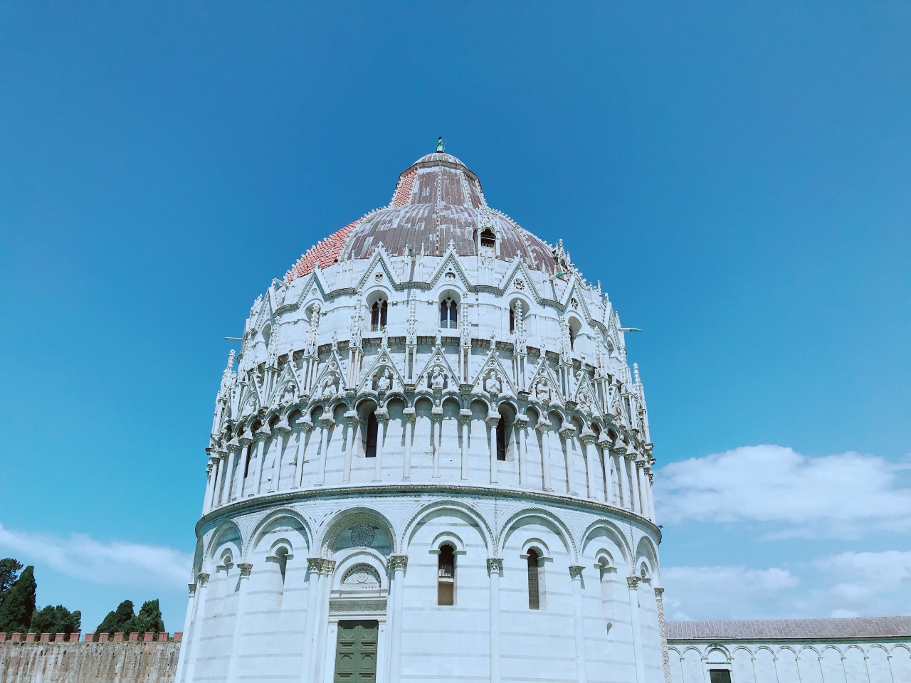 ピサロマネスク建築の大聖堂です。こちらも広場にあります。ドゥオモがあってかっこいい雰囲気。こちらは無料ではいれますがなんかめっちゃ混雑していたんですよね。1063年から建築されたそうです。もう1000年近くたってるんですね。