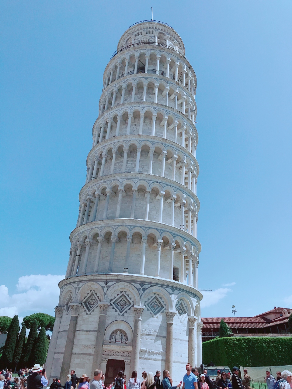 みんなが思い思いのポーズで斜塔を支える撮影をしているのがおもしろかったです。思っていたより白くて繊細でエレガントだった斜塔にかなり感動しました。写真より実物の方がかわいいタイプでした。最上階までのぼれます。