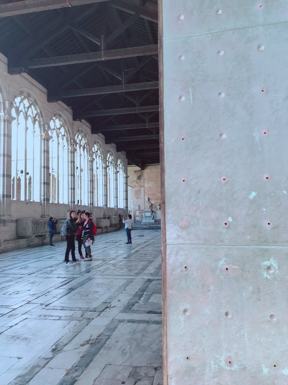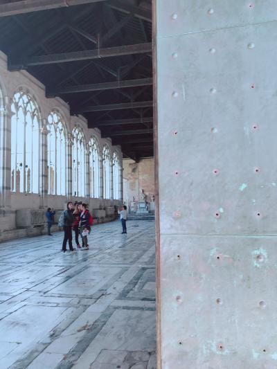 ピサの貴族のお墓が集まった納骨堂です。建物は低く長いかっこいい感じです。共通券なら広場の各建物を入場できるんですね。本当の建物は戦争で破壊されたそうです。戦争ってやつは。それを修復した建物。中はかなり天井高いです。