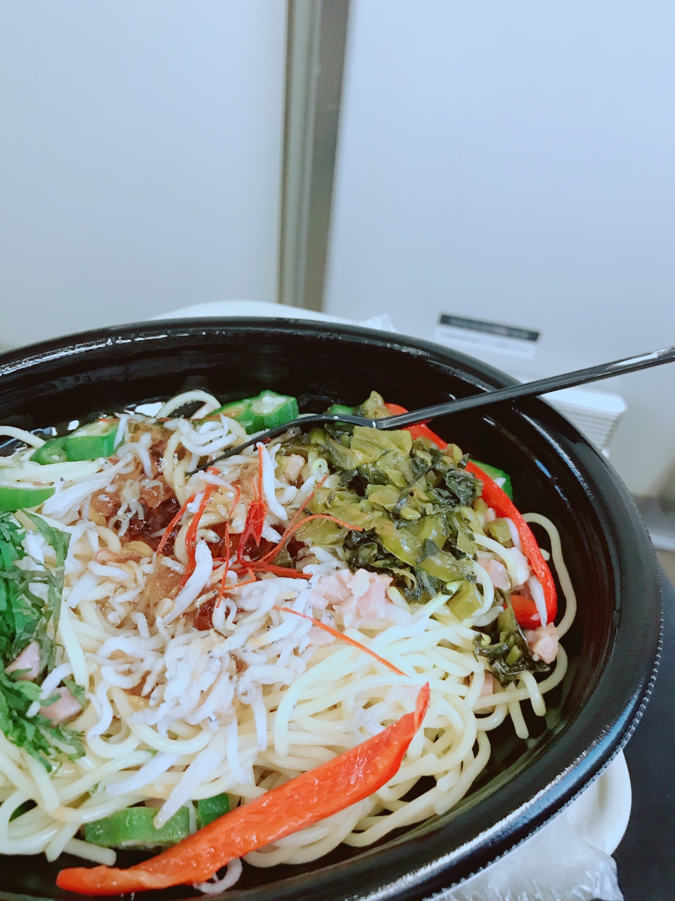 電車に乗る前にパンでも買いたいとうろうろした結果ここにおちつきまして結局パンをかわずに冷静パスタを購入。そして電車の中で食べたところめっちゃおいしくてテンション上がりました。これは好きなタイプ。もっと食べたい。