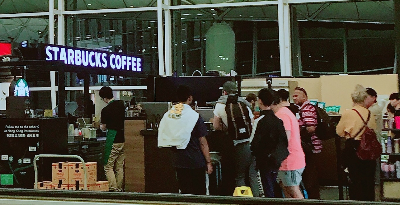 空港内のスタバって本当に便利ですね。チェックイン前とターミナルの両方にあるので使いやすいんです。ドリンク片手に待ち時間を過ごせます。小腹がすいたらスナック食べて。と香港感はないけどこれはこれでいいですね。