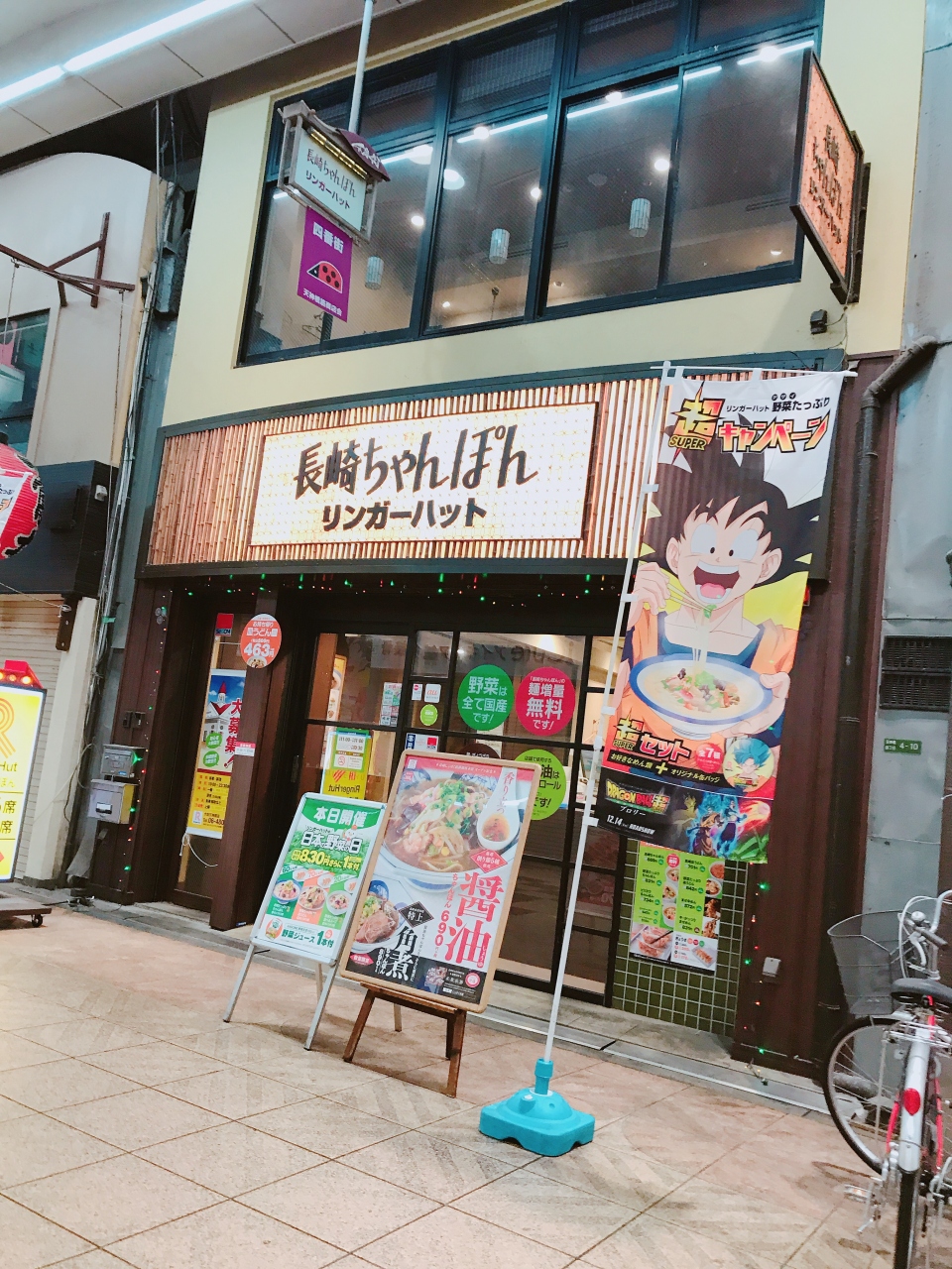 リンガーハットがめっちゃ好きです。長崎ちゃんぽんねめっちゃ食べたくなるんです。野菜もとれるから罪悪感が低いのもうれしいですし。天神橋筋商店街にもあります。しかもきれいです。テイクアウトもできます。容器代は別途いりますが、。
