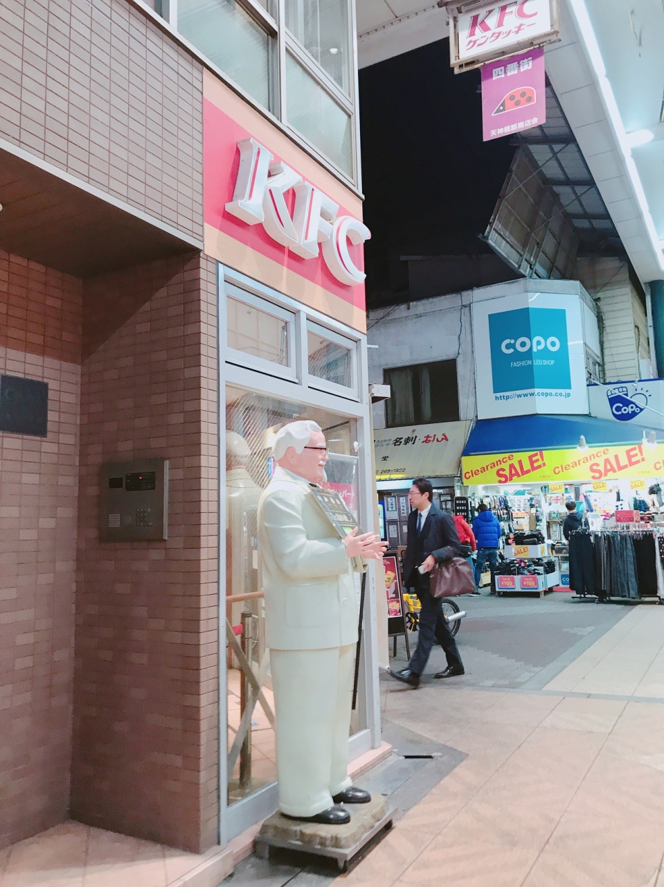 天神橋筋商店街にあるケンタッキーです。ケンチキ最近いかないし、みかけないんですよね。久しぶりに食べるとなるちチキンよりコールスローやビスケットなんですよね。チキンにはあまり興味なというゆうか。客層は庶民的です。