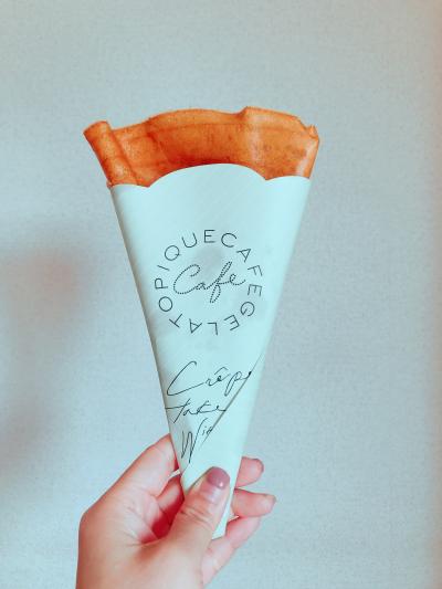 ようやくジェラピケのクレープを食べる日がやってきました。バターだけのシンプルなものがいちばんおいしいのではないかという結論になるほどおいしいです。甘さもちょうどいいし、クレープの生地もおいしくて大満足です。