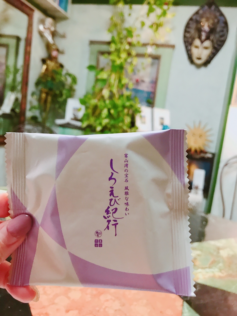 富山のおみやげといえば白エビもひとつ有名ですよね。そのおせんべいです。おみやげにしました。味はちょっと薄かったかな。ちょっと物足りないけど空腹時にはこれくらいがいいかもしれませんね。おみやげってこういうものさ。
