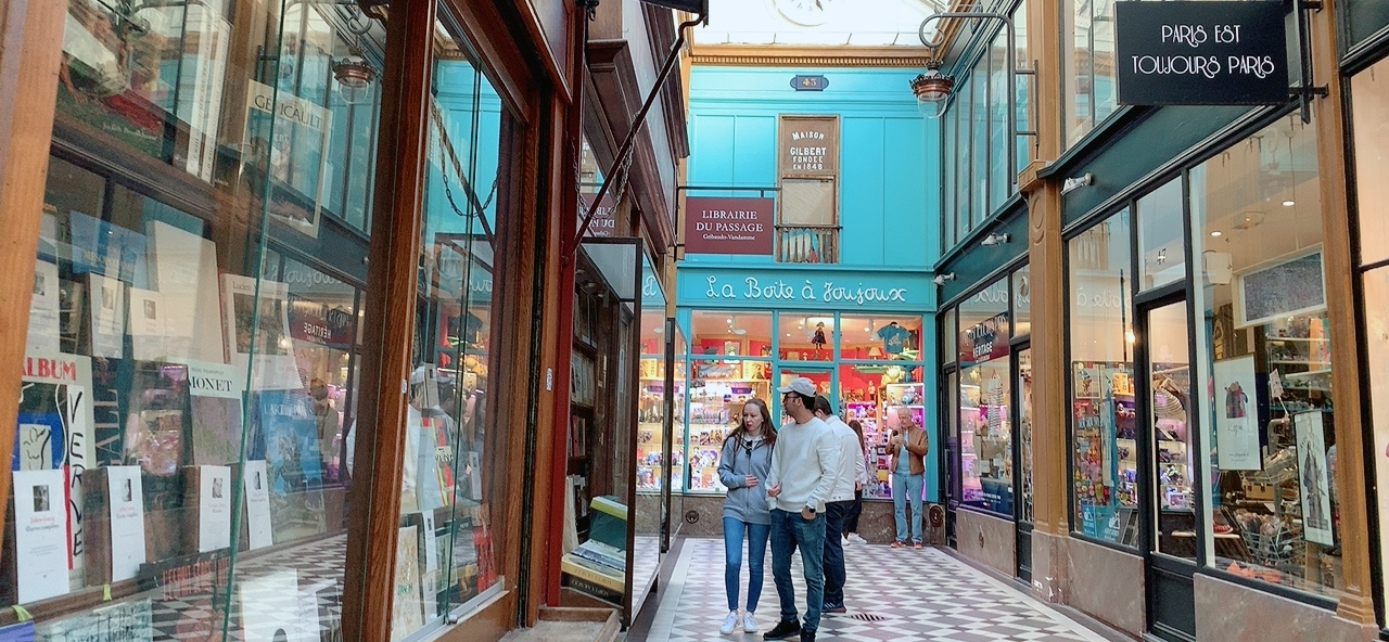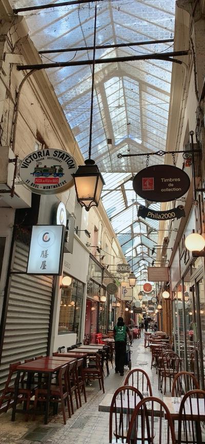 19世紀からあるパリの商店街的アーケードです。パッサージュは長い距離があってそえぞれに名前もあります。雨のひでも歩きやすいですし、夜も賑やかで楽しいですね。今回はホテルから主要観光地への中間地点として便利でした