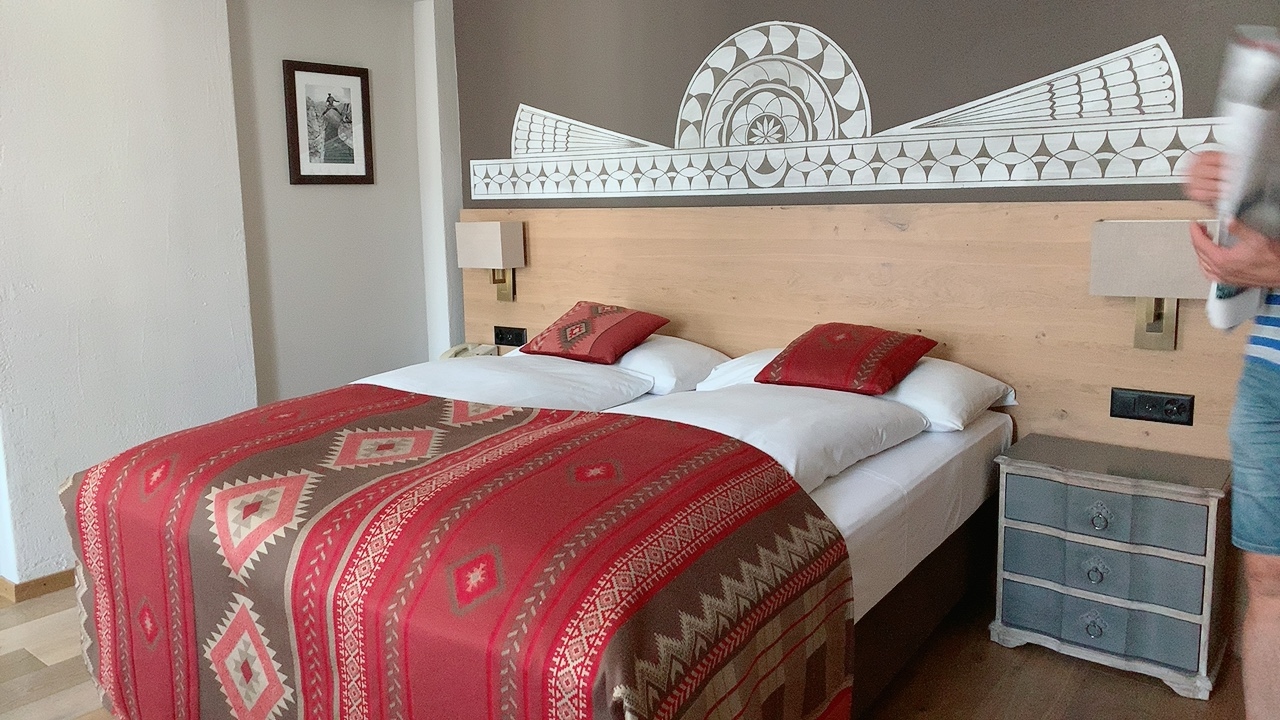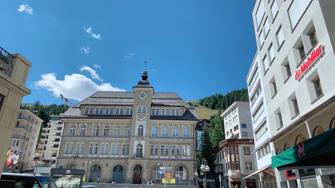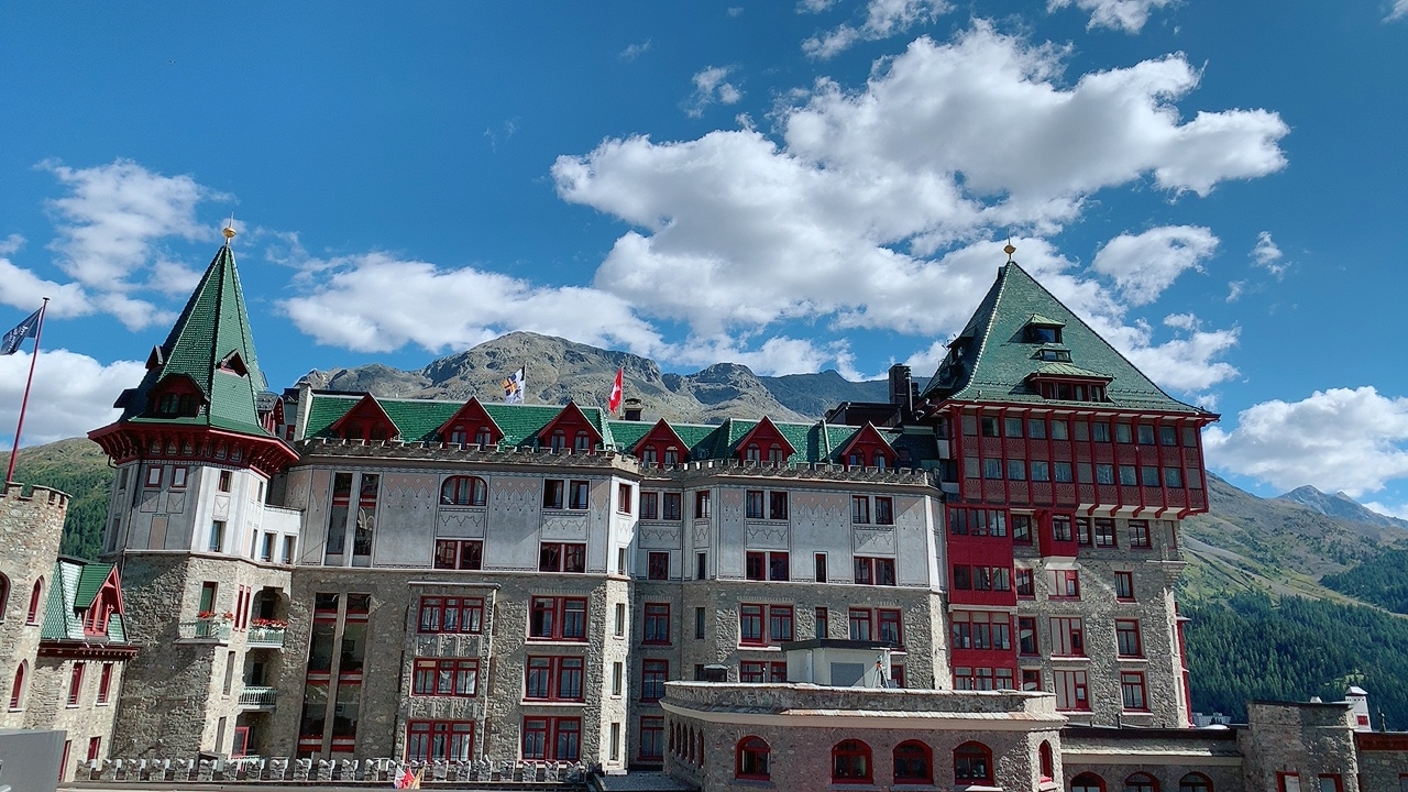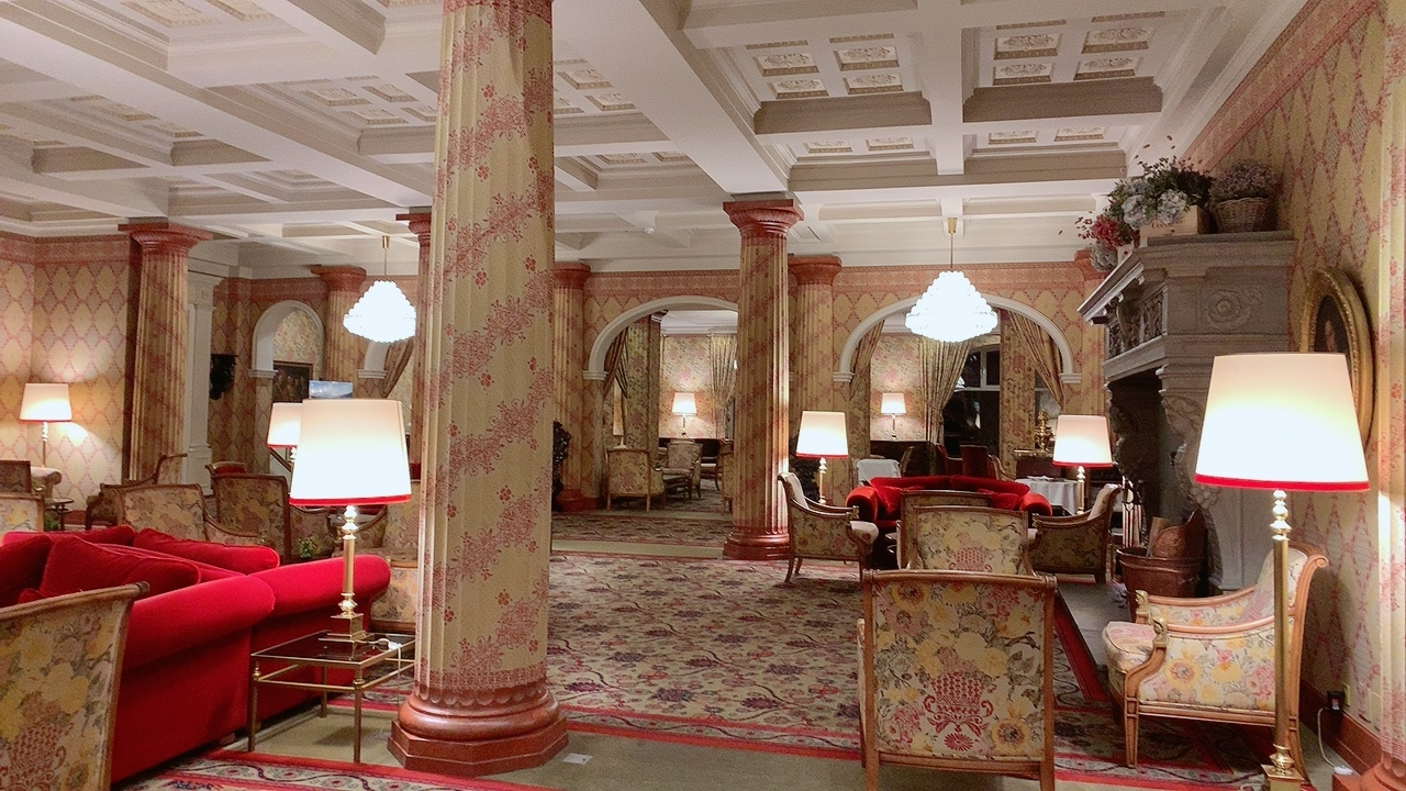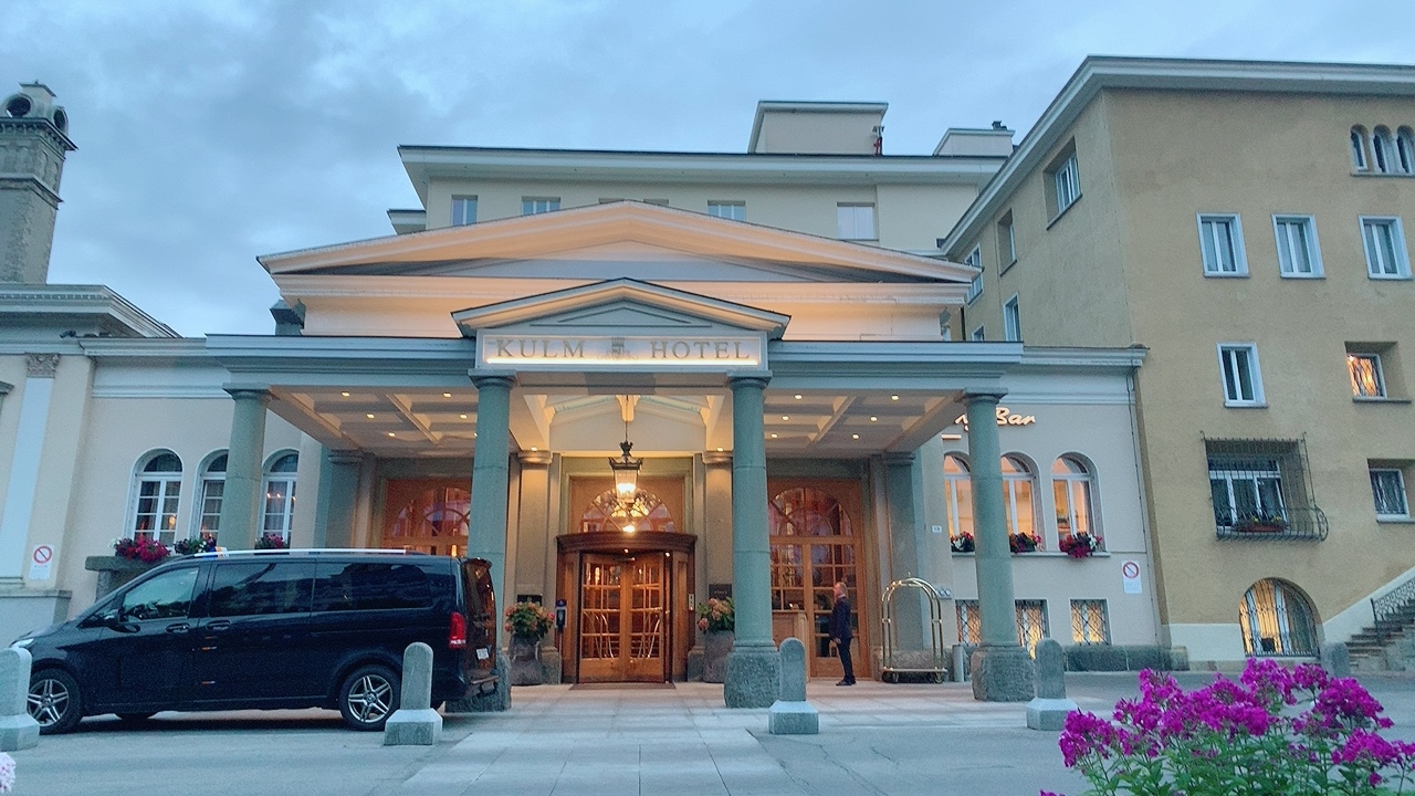 エントランス前にジャガーが止まった見るからに高級感のあるホテル。さすがサンモリッツという感じですし、サンモリッツのランドマーク的ホテルでもありますね。ブティックもステキです。外観も館内も豪華でうっとりします