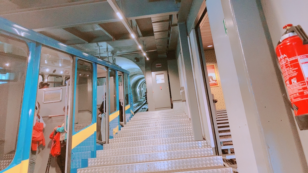 サンモリッツが人気なのは街中と山が近いことなんでしょうね。街中にロープウエイがあってすぐに山上に登れます。しかもパスがあれば無料です。夏はハイキングやサイクリストが利用されています。乗り換えありで楽しい移動です