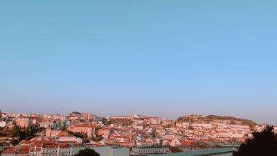 チェックしていた展望スポット。ホテルからも近いので晩御飯までの間に夕日を狙って行ってみました。トラムとの写真が撮りたかったのですが、夜はトラムがないらしい。景色だけでもと赤瓦の可愛らしい街を見ながら最後の夜を過ごしてみました