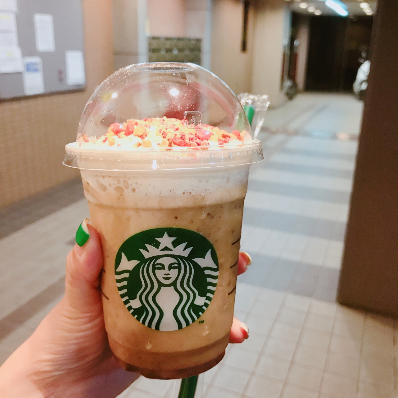 食後のスタバを利用。季節限定のアーモンドをオーダーしました。甘いです。しかも秋なのにフラペチーノをオーダーしちゃったから冷えました。ああ調子は乗ってはいけませんね。どこでもスタバ人口は多いですね。席がないのでテイクアウト。