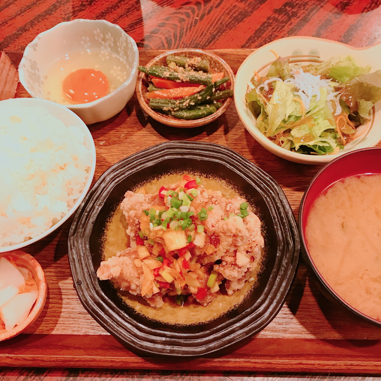 おしゃれな雰囲気のなんばにある食堂です。界隈の会社員やおしゃれ外人がきていました。5種ほどのメニューにはカローリーも明記されていました。わたしはタンパク質メインの料理をチョイスしました。玉子もついていて卵かけごはんもできてサイコウ。