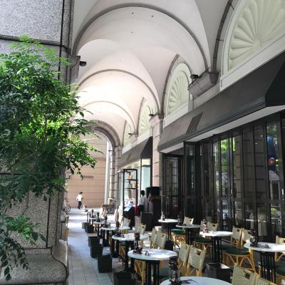 大丸といえばのカフェラです。とくに大丸神戸店のは回廊にあってパリ風の雰囲気でとても気持ちいいんです。外向きに並ぶテラス席がとても優雅です。老いも若きもたくさんの人が昼さがりにはお茶をしてて、まるで日本じゃないみたいな景色。