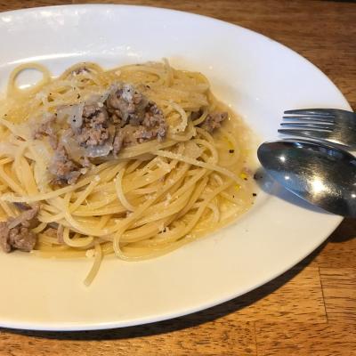 久しぶりに堀江のイタリアンへランチ。こちらにきたらいつも同じメニューを頼んでしまいます。700円でサラダプレートとパスタが食べられるというコスパの高さも気に入っています。シンプルなのにこの旨さは最高ですね。