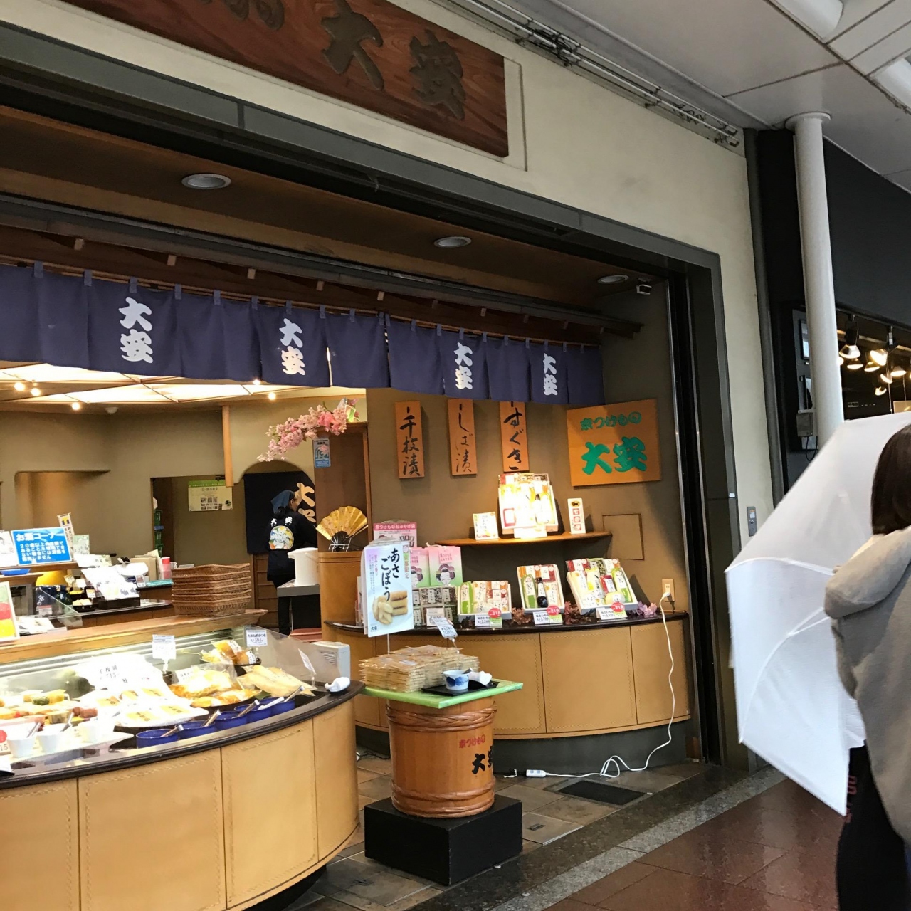 京都の名漬物屋さん。デパ地下などにも入っていますが、三条河原町には路面店があります。おいしいですね、大安のお漬物。子どものときからよく食べていたので懐かしい味がします。味見もさせてもらえるし店頭で買うのも楽しいです。