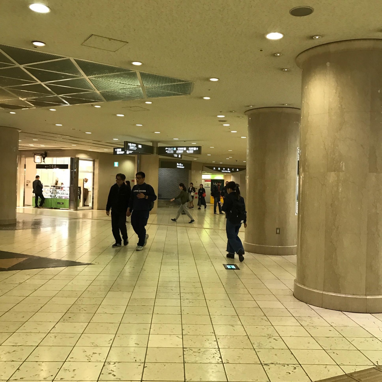 4つある大阪駅前ビルのひとつです。このなかにはチケット屋さんや飲食店などが入っています。この4つのビルは地下でつながっているので移動もすいすいです。人もまばらなので大阪の中心部にいることを忘れてしまいます。