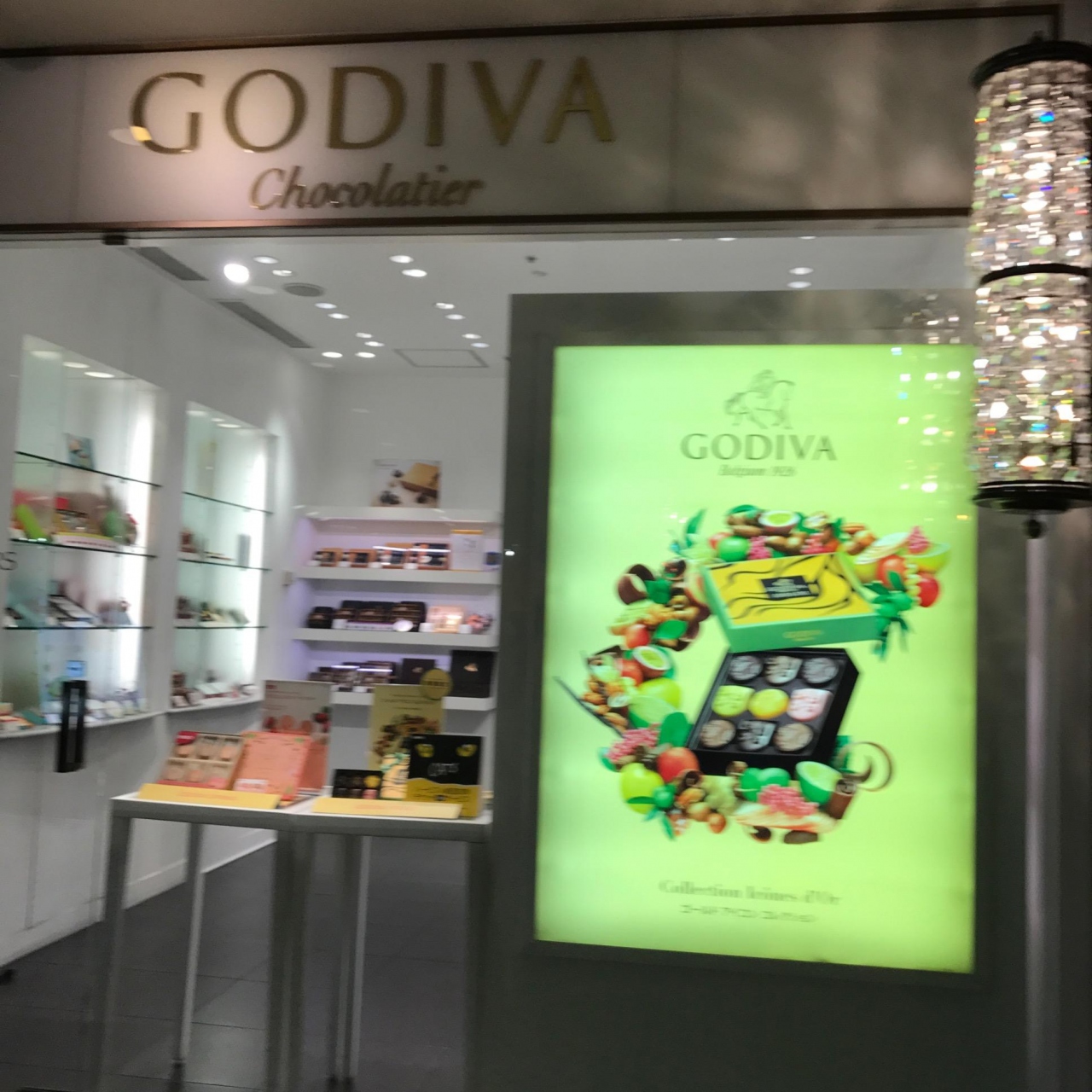 ハービスエントの地下の入口すぐにあるゴディバです。バレンタインの周辺でない限りすいています。お店もそれほど広くないですし。ギフトなどとして送るのにちょうどいいですね。やっぱり間違いなくおいしいですしね。