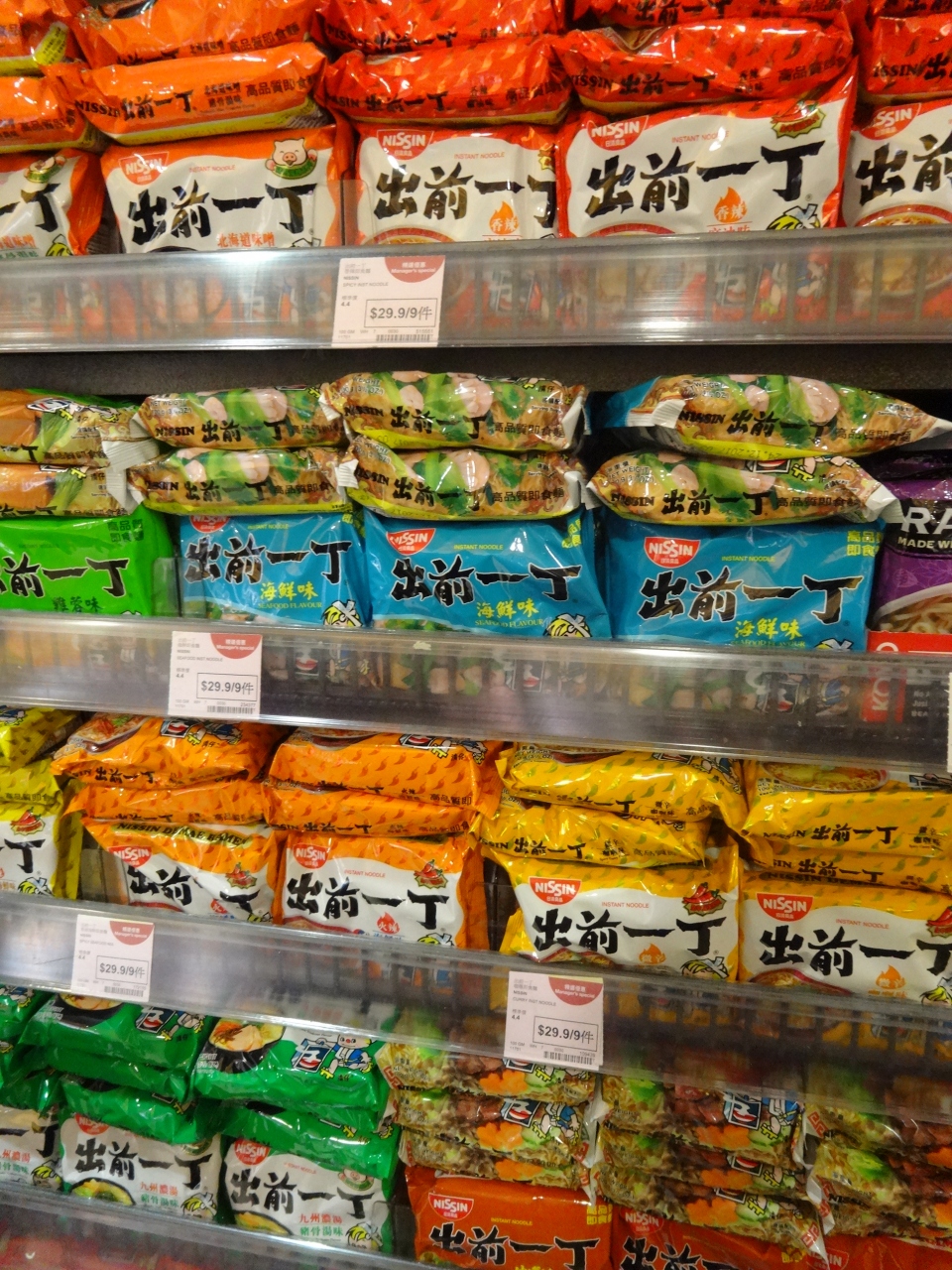 エレメンツにもある高級スーパーがIFCないにもありました。飲み物がほしくて立ち寄りました。あっ、おみやげも探しておこうということで物色。ガイドブックでおなじみの即席ラーメンもずらりと陳列されていました。
