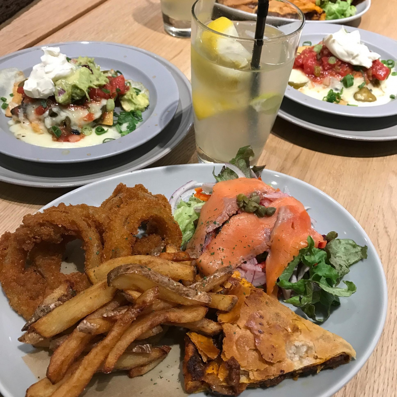 ルクア大阪でごはんを食べたくてうろうろ。5階にパイの専門店が誕生していました。甘いものよりもちゃんと食べたかったのでアパタイザーのセットをいただいたのですがすごいボリューム。野菜いっぱいでうれしい。オニオンリングもかりかり。