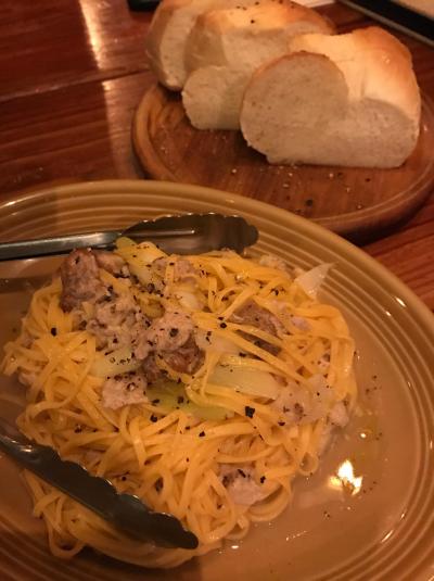焼き鳥を食べに笹屋に行った後、隣の生パスタ屋さんがおいしそうと二軒目に行きましたが、同じ母体でした。建物は笹屋の2階。好きなソースを選んだら生めんを数種持ってきてくれて選べます。もちもちとした麺にソースが絶妙にからみます。