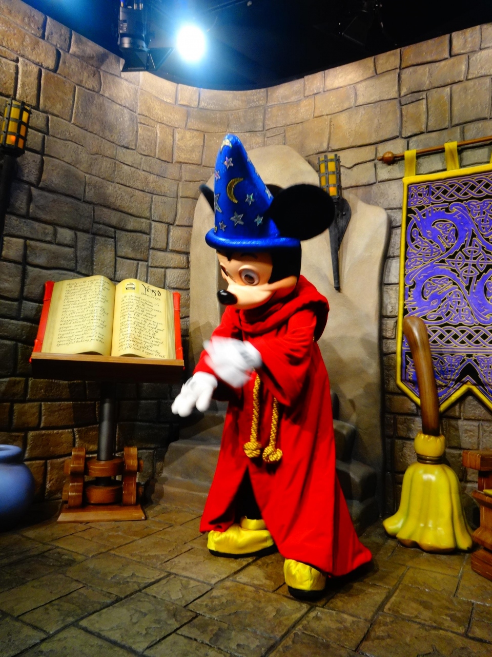 ハリスタのミッキー&ミニーのキャラグリ施設です。こちらはハリウッドらしく、ミニーちゃんはハリウッドスター、ミッキーは魔法使いの弟子スタイルです。こちらで出会ったミッキーはWDWのなかで一番楽しく愛想がよくて幸せでした。