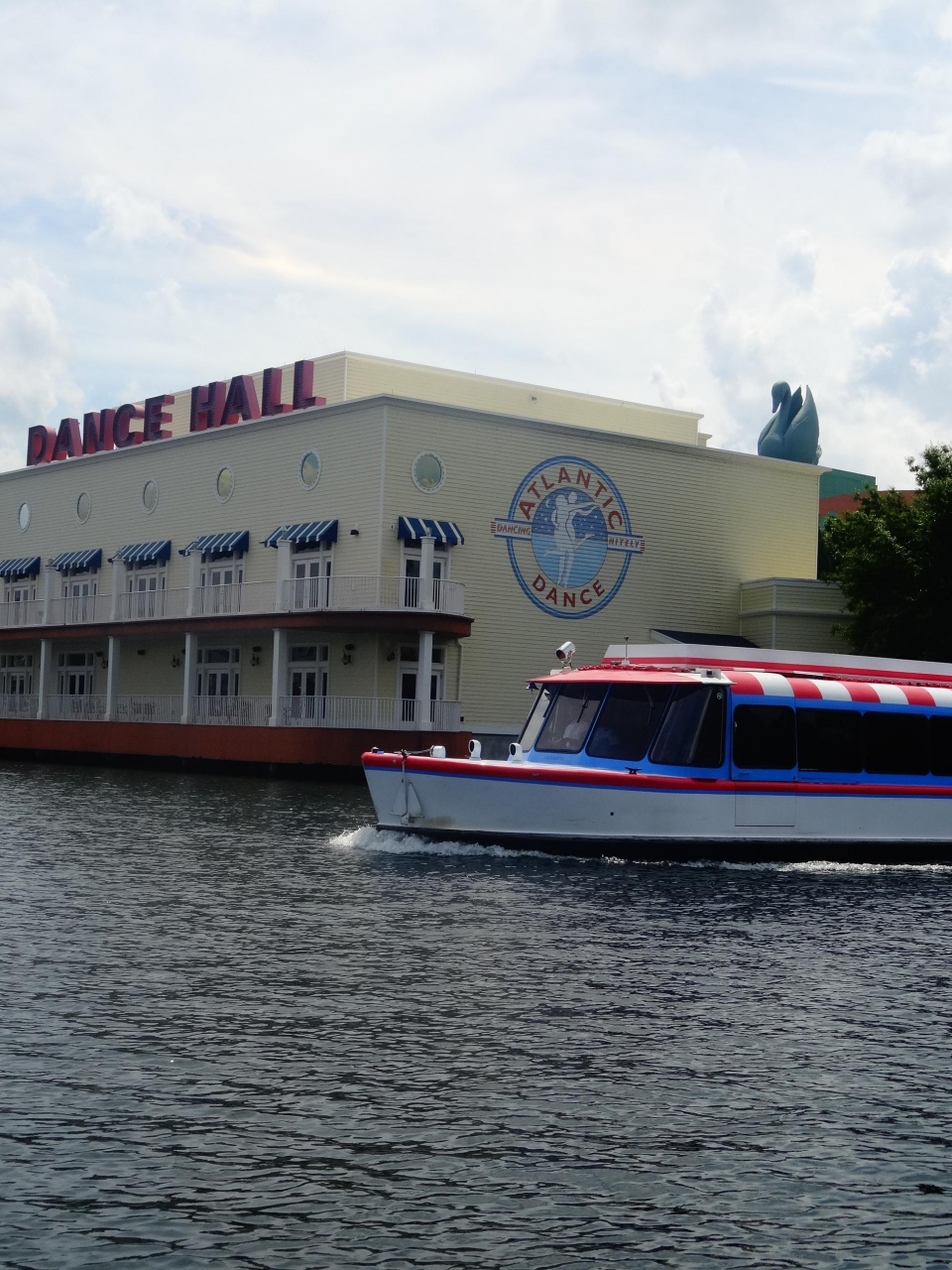 エプコットとハリスタを結ぶ船、フレンドシップ号に乗ってちょうど中間地点にあるのがココです。ここにはスワン&ドルフィンのホテルのおひざもとでもあります。ショップやレストランもあってひとつの街になっています。滞在者には最高ですね。