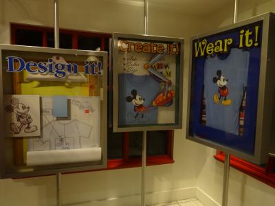 スプリングスのアートオブディズニーに併設しているのがTシャツをクリエイティブできるこちら。ある程度決まったフォーマットがありそれを機械でどんどん選んでいきます。アメリカ人は自作のおそろTを着ているグループが多いです。