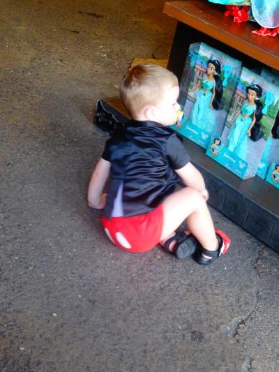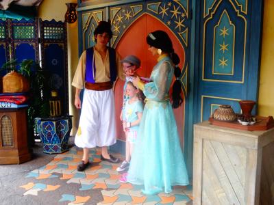 アラジンエリアにあるショップです。こちらはアラジン&ジャスミンのグッズを中心に販売。そして軒先ではアラジャスのグリをしています。わたしたちのときは超美男美女のあたりアラジャスでした。並んでいる間も見られて楽しいです。ずっと愛想がよかった。