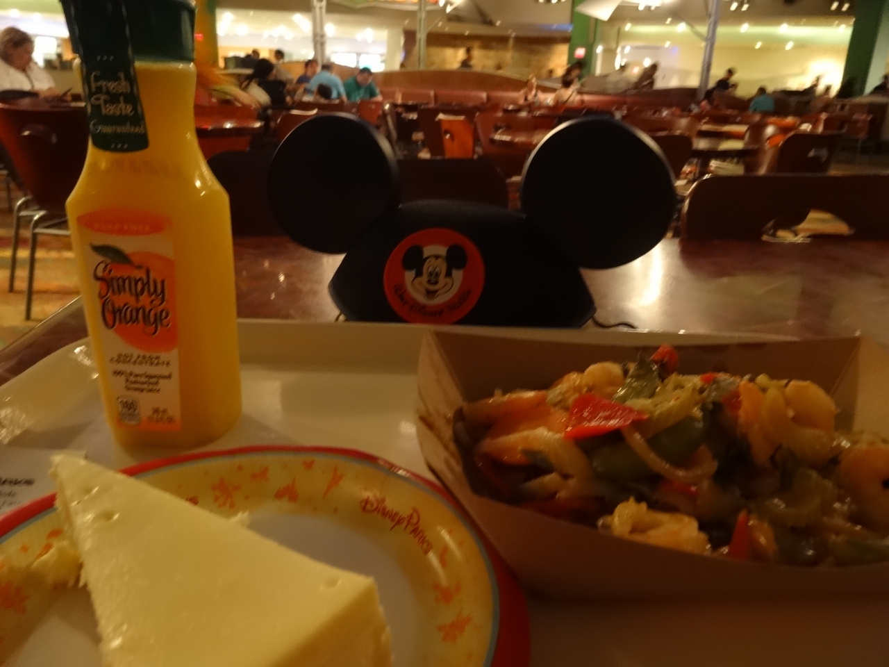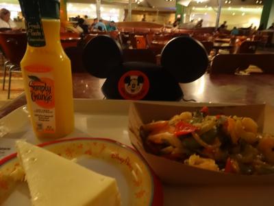 エプコットの夕食はこちらで。数種類のブースから選べるタイプでした。私はチャイニーズのヌードルをチョイス。ヤキソバ的な。エビなどのグをたくさんのせてくれてお得な気分。味はこかったですが欲していた感じ。すいていたのでゆったり休憩できました。