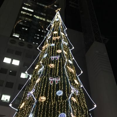 スカイビルの1階外で毎年12月に行われているクリスマスマーケットです。ドイツからやってきたマーケットは、ワッフルやサンドイッチ、スープなどのフードや民芸品のブースがいっぱい。さらにサンタさんもいて記念撮影もOK。