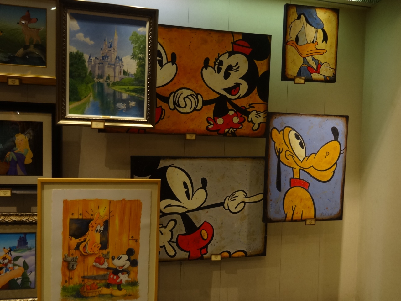 スプリングスにもあるアートの専門ショップがエプコットにもあります。ディズニーのイラストやオブジェなどお部屋に飾りたくなるものがたくさんあって垂涎ものです。絵描きさんのサイン会もしていました。一生ものになりますね。