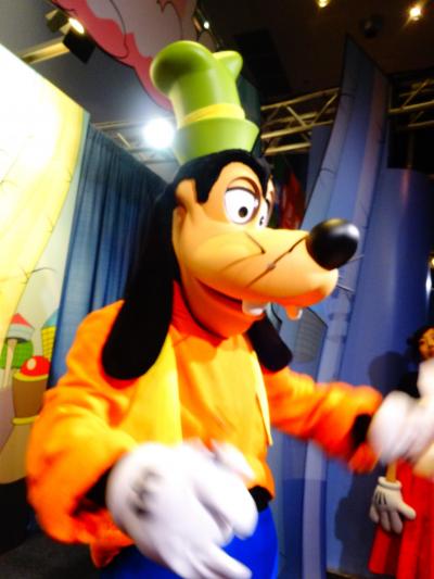 スタンダードな衣装を来たミッキー、ミニー、グーフィに会えるキャラグリ施設です。タキシードミッキーに会えるのはWDWではココだけ。お揃いコーデで参戦しました。グーフィもかわいいです。1度で3キャラにであるのはお得。