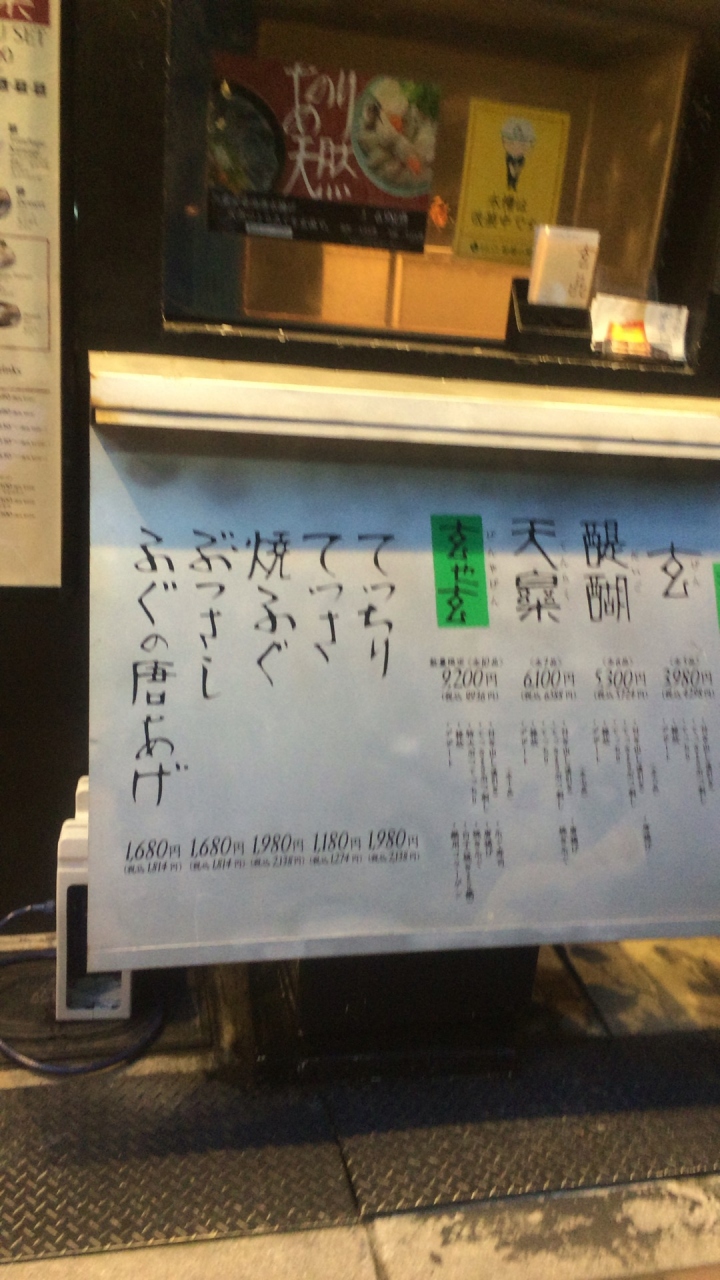 ふぐ屋さんです。比較的リーズナブルに食べられるチェーン店です。大阪市内だけでも結構な店舗数があります。こちらは心斎橋と本町の間にある船場のお店です。場所がら会社帰りの利用が多いかな。冬は宴会なども多くしています。