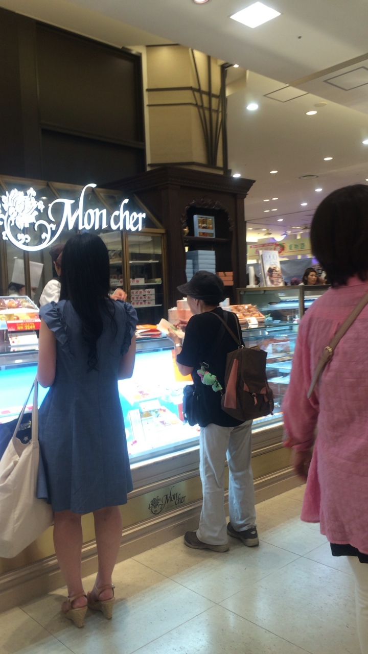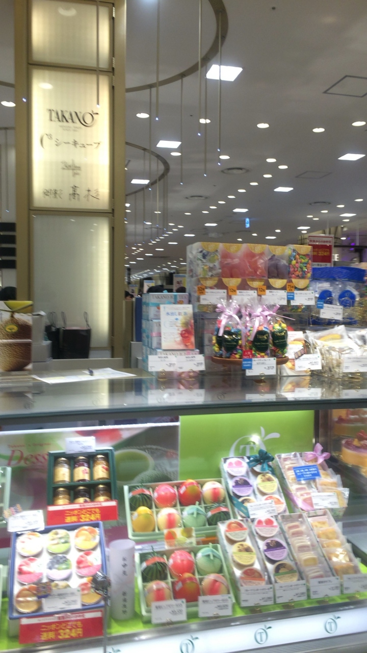 うめだ阪急にあるパティスリーのひとつ、ムッシュマキノです。ショーウインドには美味しそうなケーキがずらり。店員さんにオーダーすると奥から持ってきてくれます。フレッシュケーキはボリュームのわりにはリーズナブルかも。
