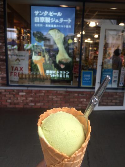 大好きなお店サンクゼール。長野を代表するお店のひとつです。アウトレット内の店舗ではドレッシングやドリンクなどをリーズナブルに購入できて必ず立ち寄ります。今回はあつかったのでジェラートを購入!おいしいです。豆乳ドーナツも買いました。