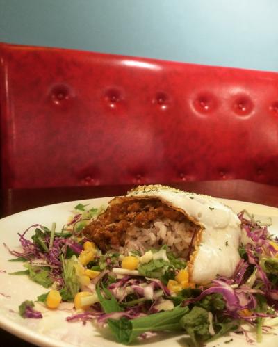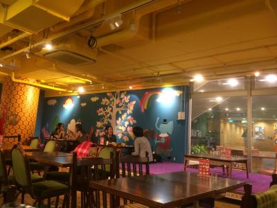 なんばシティにある太陽ノ塔のカフェです。大阪市内に数店舗あるとにかく女子ウケのよいデコラティブなスイーツやデザートが有名。店内はリニューアルしたようでちびっ子も楽しめる空間になっていました。夜にタコライスをいただきました。