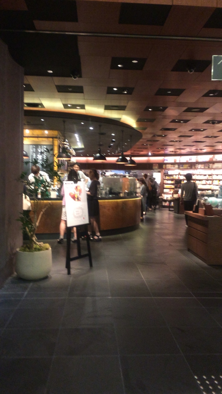 ルクア何には数件のスタバがあるのですが、こちらは蔦谷書店内のスタバです。もしかしたら一番混んでいるかも昼も夜も常に行列ができています。蔦谷書店の本を片手にコーヒーが飲めるのはいいですよね。天井が高いから気持ちいいですし。