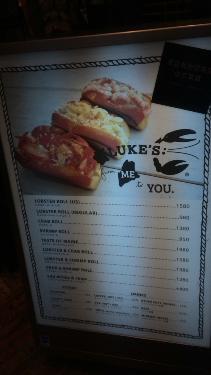 心斎橋筋商店街の中にあるロブスターロールの専門店です。ジャーナルスタンダードの店頭にあります。ニューヨーク発祥だそうです。どうりで垢抜けた感じですね。パンの上にはロブスターの身がどっさり。ちょっと高いけど至福の味です。