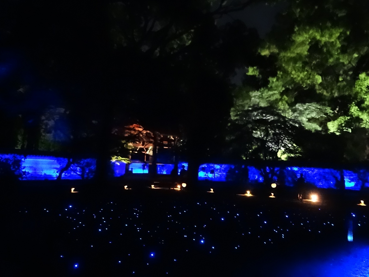 ゴールデンウィーク中にライトアップをしているという雑誌を見て訪れました。青いやさしい光が庭園にグラデーションを奏でながら光り、とにかく癒されます。縁側に座りその明かりを見つめているとあっという間に時間が過ぎました。