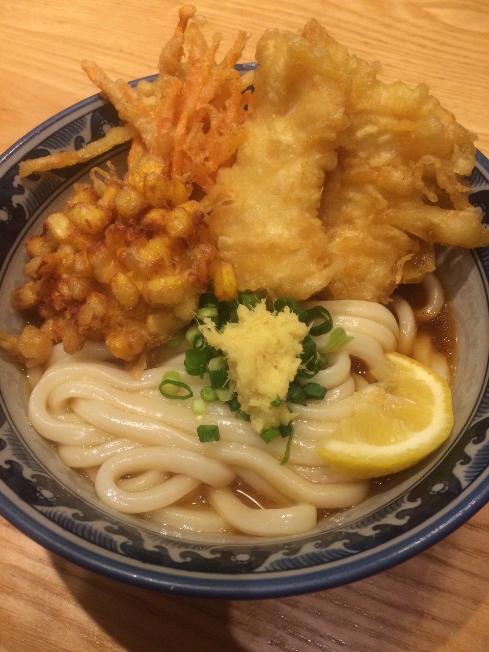 大好きな讃岐うどんのお店です。もともとここNGK裏にあり行列ができる店としても有名でした。今では梅田にもあります。讃岐ならではのうどんのコシが美味しいです。そして鶏天が有名。が、今回はイカ天にしました。揚げたてはやっぱりおいしいです。