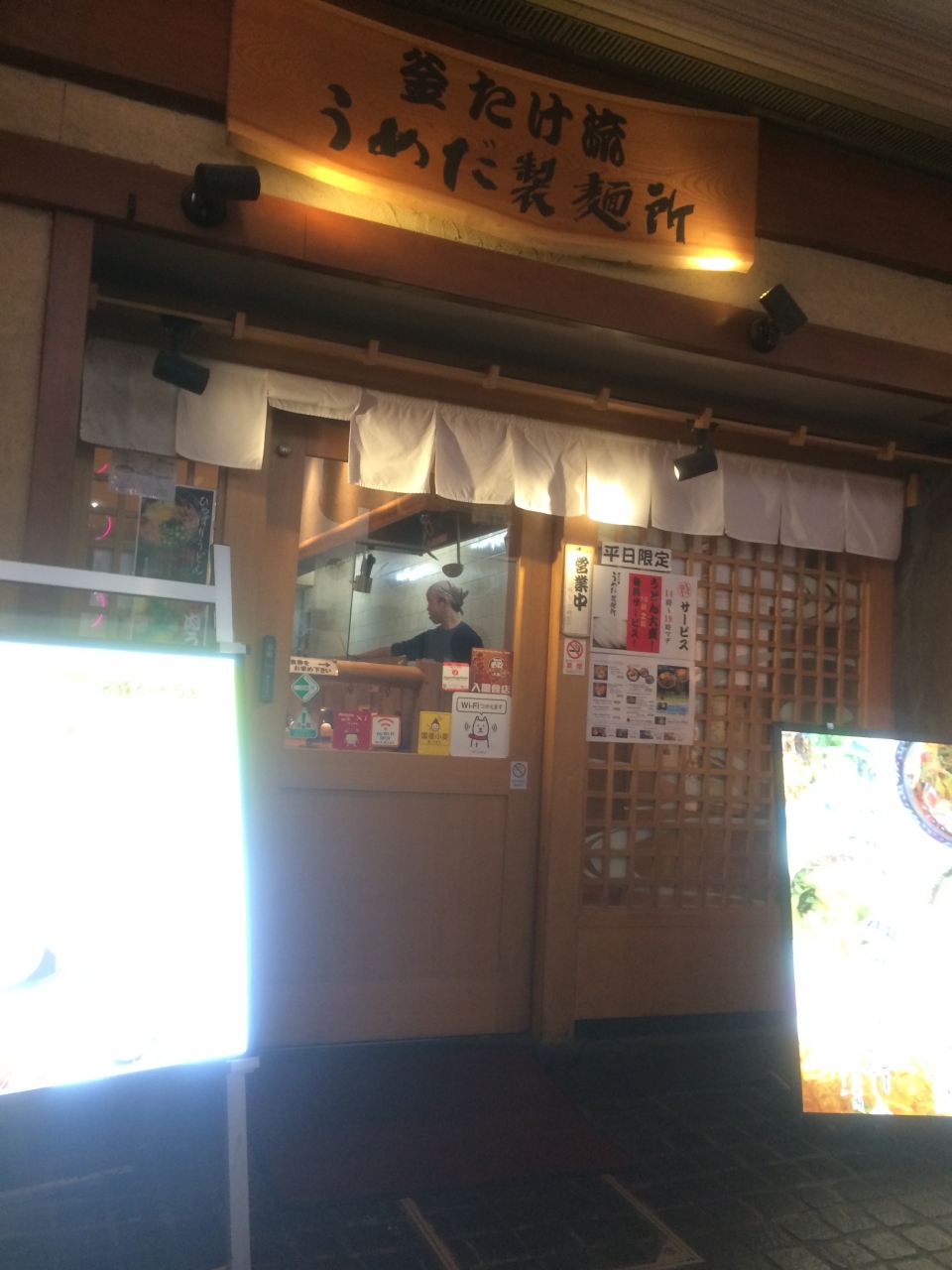なんばで人気のうどん店。知らないうちに梅田にもできていました。HEPの裏です。こちらは讃岐うどんなのでのどごしが特徴です。おいしいです。わたしは釜玉がお気に入りです。ちくわ天もおいしいです。ささっと食べたいときにいいですね。