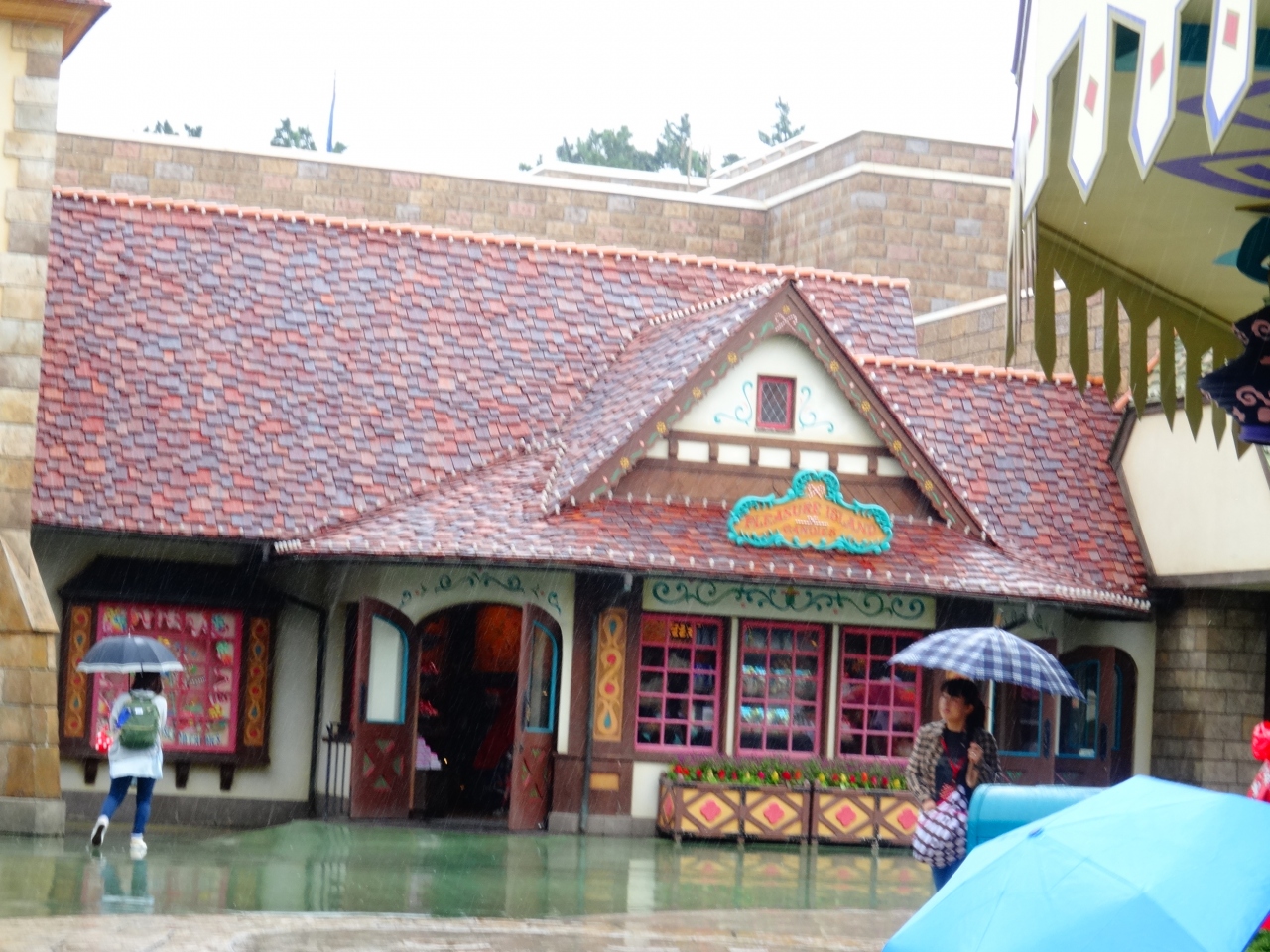 周辺はいわゆるダッフィゾーン。こちらはペグおばさんが経営するカントリー風のショップです。赤い外観が目印、こちらにもダッフィーやシェリーメイのぬいぐるみやグッズがずらりと並びます。カントリー風のアットホームな雰囲気が心地いいです。