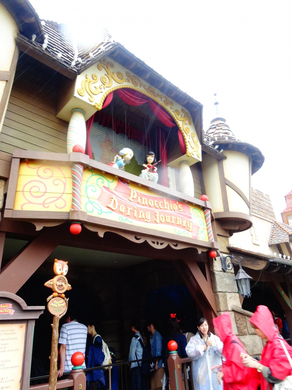 ファンタジーランド内のピノキオのアトラクションです。木の人形だったピノキオが、ほんものの人間になるまでのあの有名なストーリーをトロッコに乗って2分間で巡ります。あっという間ですがピノキオ好きだからやっぱり楽しいな。