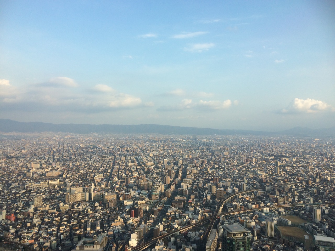 アベノハルカスの展望台60階に行ってみました。エレベーターでシュッといけます。星空を登る演出が楽しくて子供たちが喜んでいました。地上300メートルはとても高く環状線の線路がぐるっと見えます。梅田周辺には高いビルがちらほらありましたが他は低いのも印象的でした。