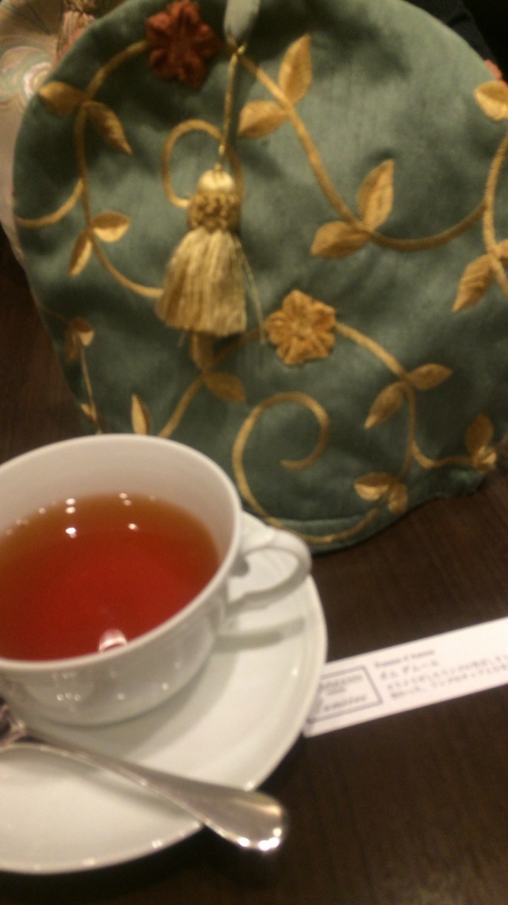 フランフの高級ティサロン。?島屋大阪店の2階にあります。少し並んでソファ席をかくほ。香りがとてもよいリンゴ系の紅茶をいただきました。とても芳醇な香りで美味しかったです。今回は食べませんでしたがプレートメニューやスイーツもあります。
