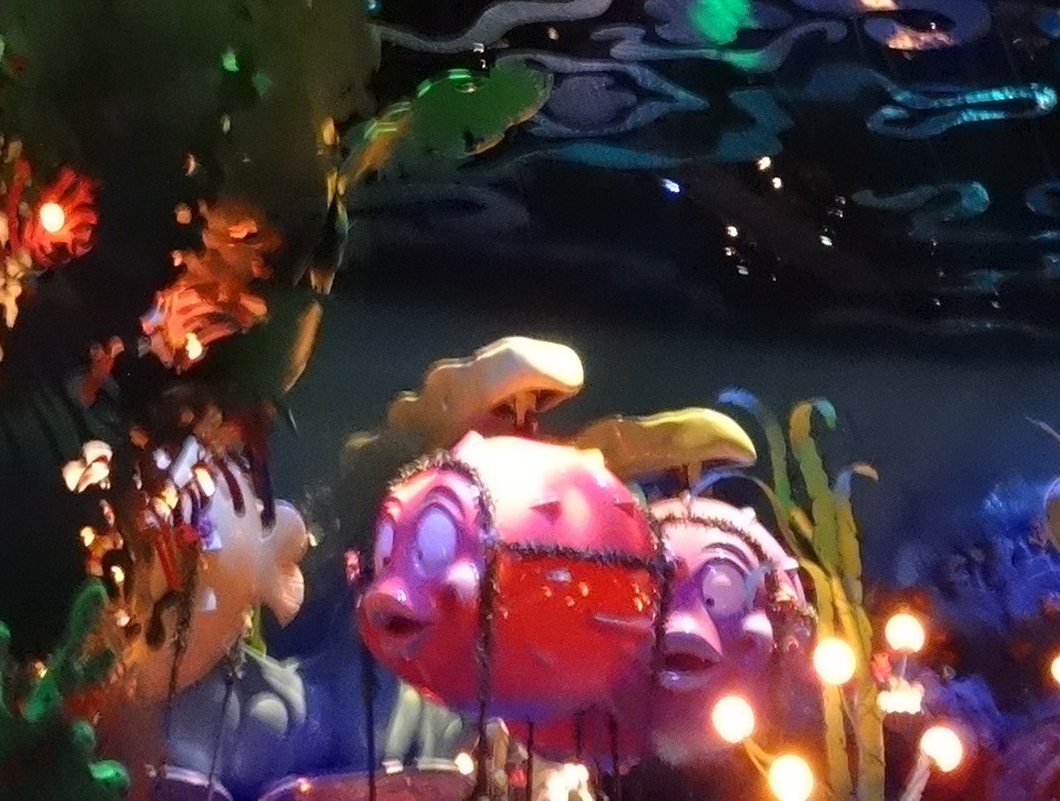 マーメイドラグーン内にあるちびっこ用のアトラクションです。ブローフィッシュたちが回転レースをするという設定で、かわいいフォルムのふぐに乗り込んで上空をぐるぐると回ります。油断していると結構酔います。かわいさに惑わされないで。